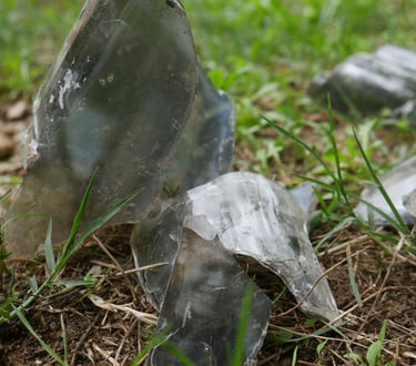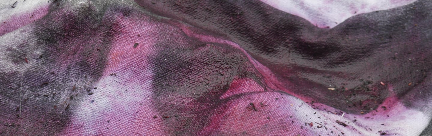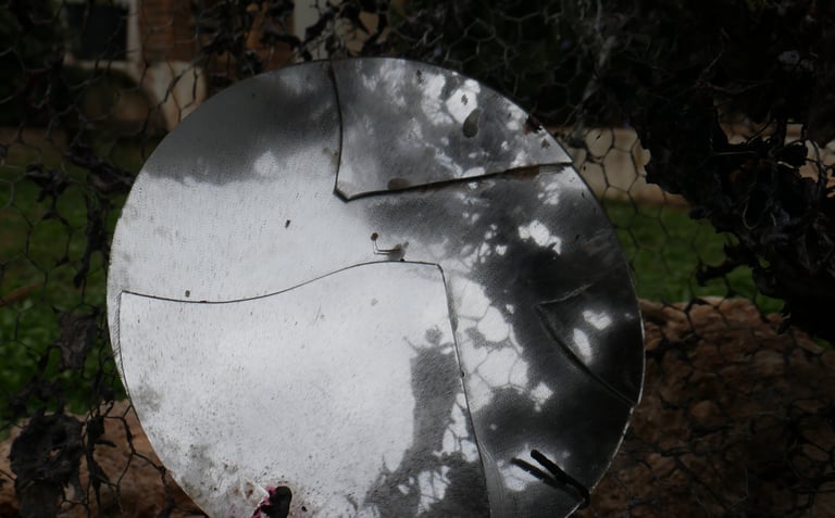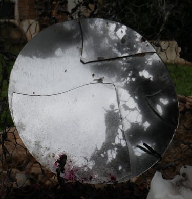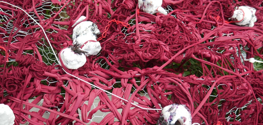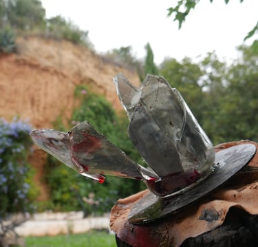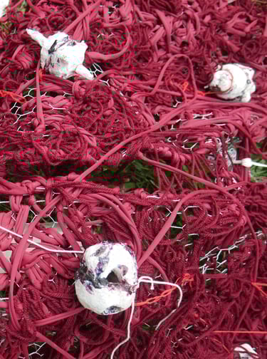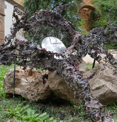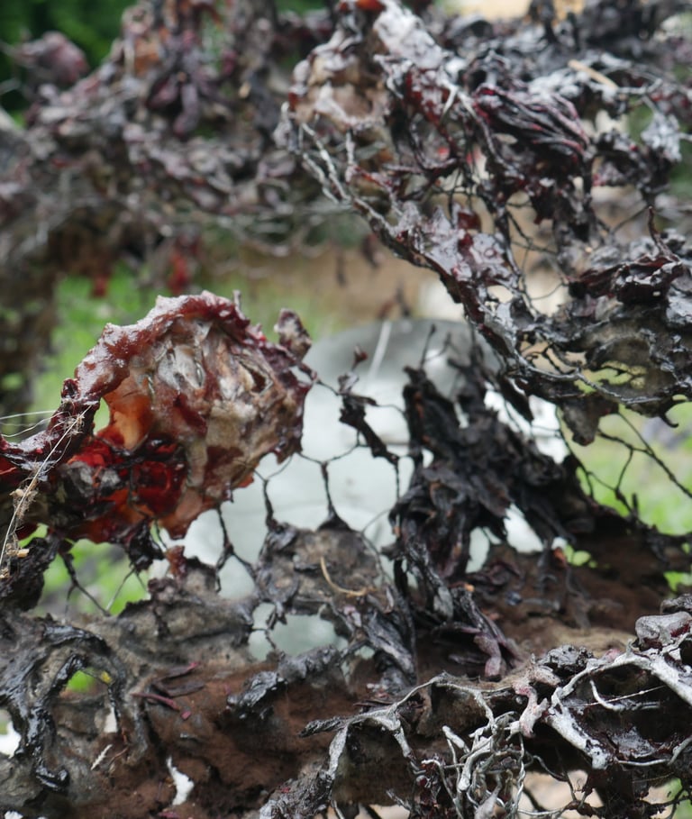 Zoom, sculpture en gélatine d’hibiscus, grillage, miroire cassé, 150 x 140 cm.