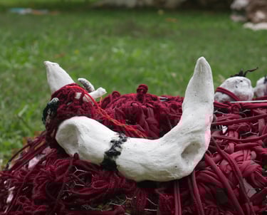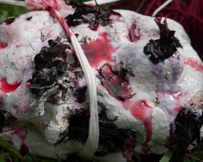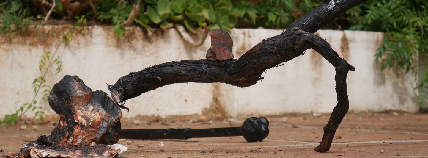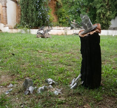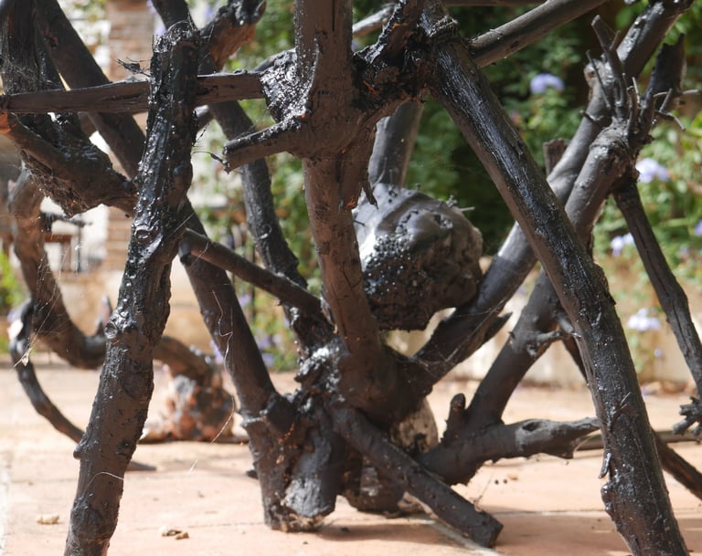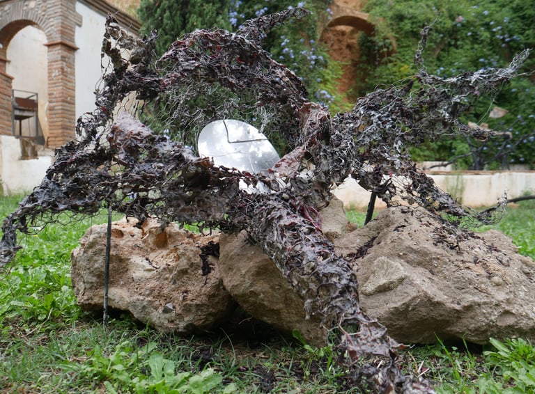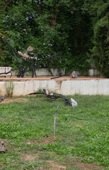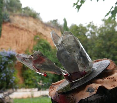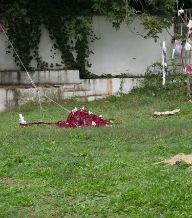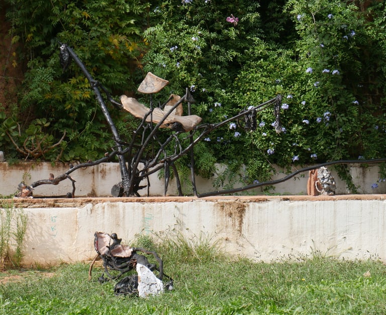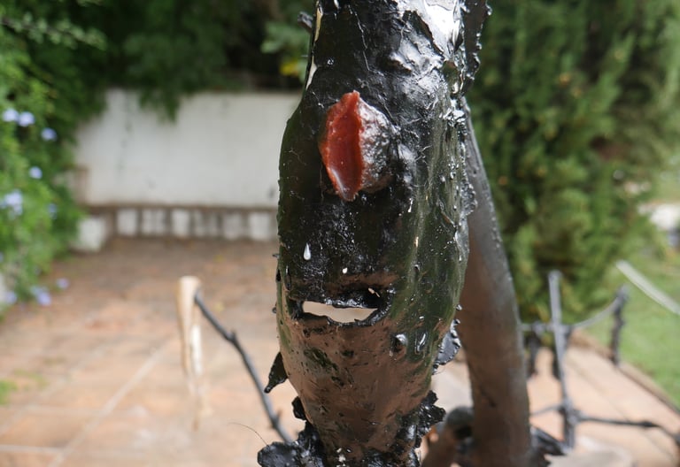 San ko mwen ka volé ("Sans corps, je vole") est un projet en cours de création, que je développe actuellement en résidence de 5 mois à Can Serrat (Catalogne, Espagne). Je travaille actuellement à la fabrication de chaque fragment de ce récit : objets-sculptures, matières organiques et éléments symboliques : pour composer une grande installation dispersée dans un jardin, visible de nuit, à la fin septembre. Chaque fragment est un écho, une trace, un organe d’un corps absent. Autour des thèmes de la mémoire, de l’archive éclatée, de la filiation et de la survivance. Au cœur du projet : la figure du zonbi, non pas comme être sans âme, mais comme entité de résistance, de mémoire réactivée, de passage entre mondes.