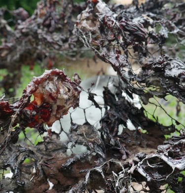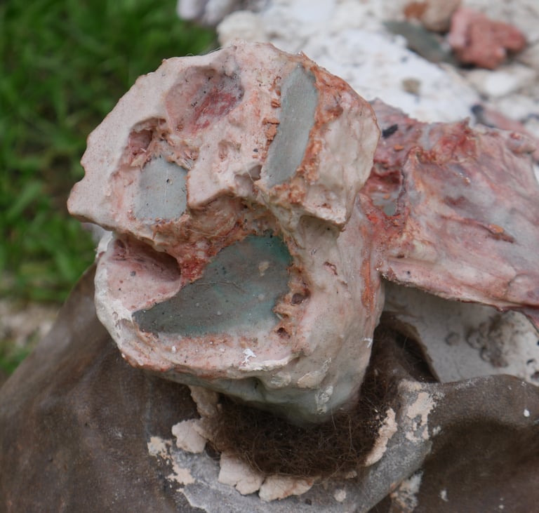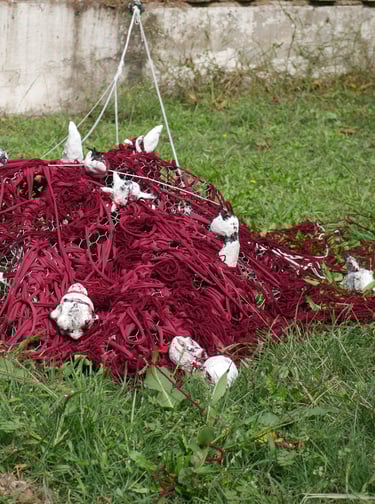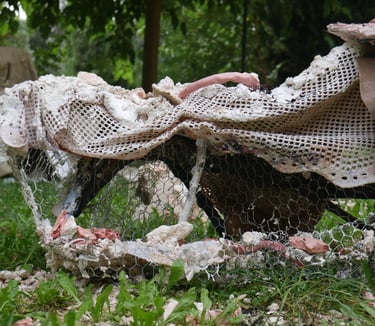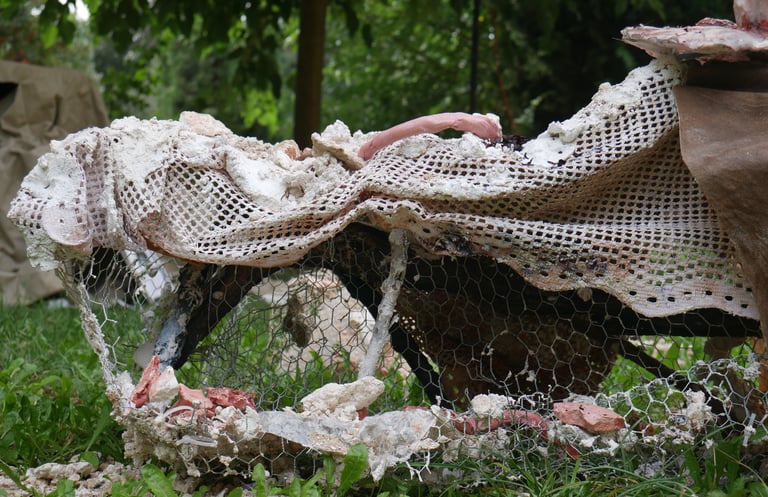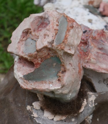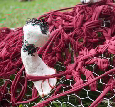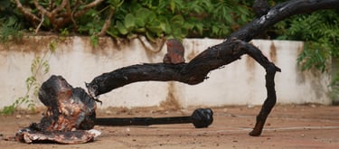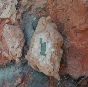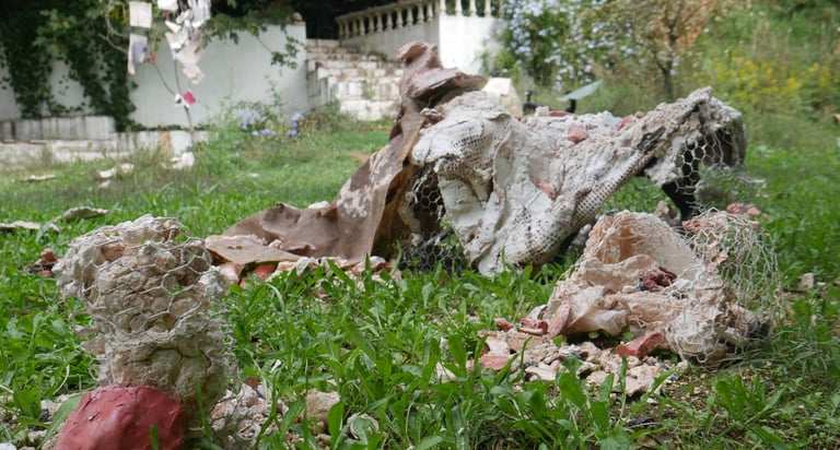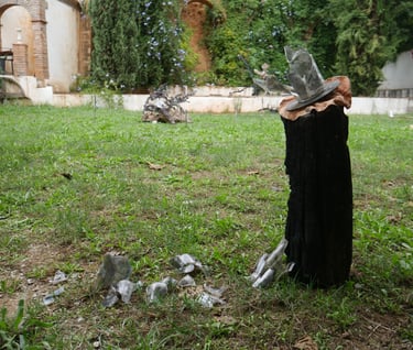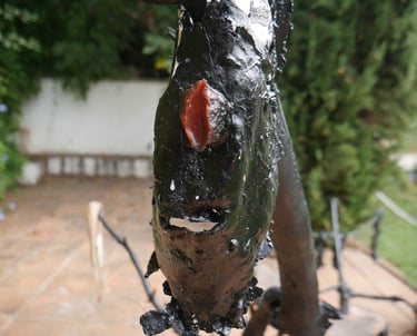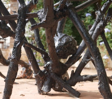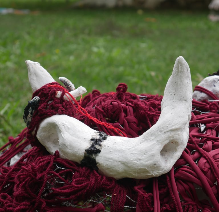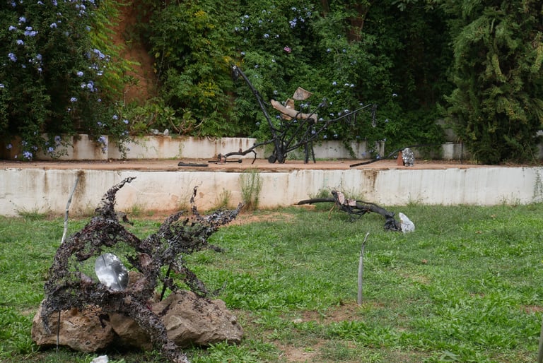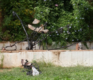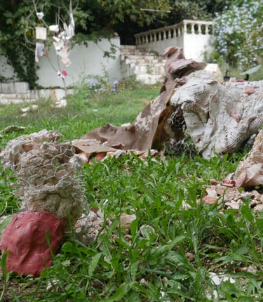 San ko mwen ka volé ("Sans corps, je vole") est un projet en cours de création, que je développe actuellement en résidence de 5 mois à Can Serrat (Catalogne, Espagne). Je travaille actuellement à la fabrication de chaque fragment de ce récit : objets-sculptures, matières organiques et éléments symboliques : pour composer une grande installation dispersée dans un jardin, visible de nuit, à la fin septembre. Chaque fragment est un écho, une trace, un organe d’un corps absent. Autour des thèmes de la mémoire, de l’archive éclatée, de la filiation et de la survivance. Au cœur du projet : la figure du zonbi, non pas comme être sans âme, mais comme entité de résistance, de mémoire réactivée, de passage entre mondes.