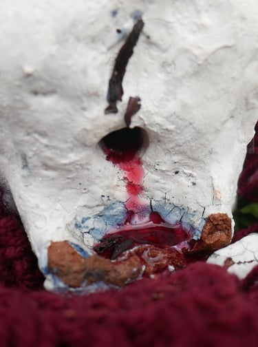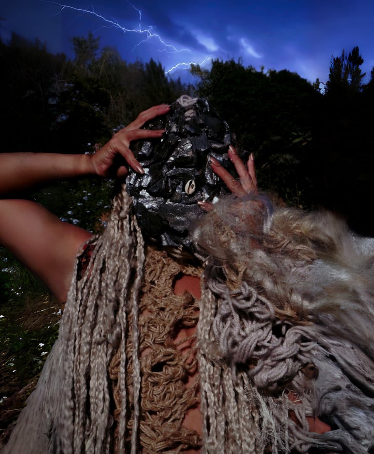 Cette figure hybride guide mon geste artistique, entre rite, fiction et mémoire incarnée. Ce projet hybride à la croisée entre performance contemporaine et théâtralité est issu de ma nouvelle. Une autofiction identitaire et futuro-Historique, ce projet met en scène une jeune femme métisse caribéenne vivant dans un monde postapocalyptique. Repliée avec sa mère dans un espace suspendu, elle reçoit des lettres d’un père qu’elle croyait disparu. Artiste pluridisciplinaire - Je m’aventure continuellement à la croisée du documentaire et de la fiction, de l’histoire et de l’intime, de la collecte et du partage, ainsi que de l’expérimentation et de la muséologie, dans une quête de réappropriation de mon identité collective. Notre clameur, ce lien indéfinissable entre nous. Des zonbi mémoires vivantes d’une violence ancestrale.