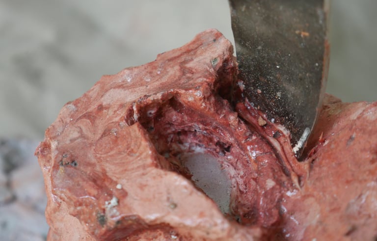Zoom, Cœur musicale, 15 instruments artefacts, céramique, gélatine et feuille d’hibiscus, taille variable.